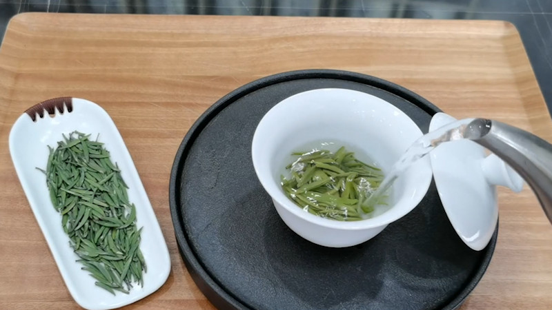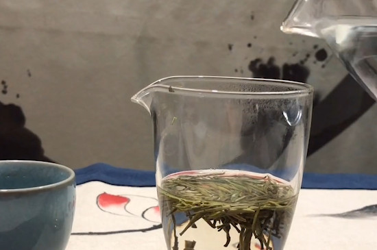接着将3~5g的绿茶用茶匙投入玻璃杯中,倒入80~85℃的开水浸润绿茶,并端起玻璃杯轻轻摇晃,3秒后倒掉茶汤,并再次注入开水,耐心等待1分钟的时间舒展茶叶,即可品饮。