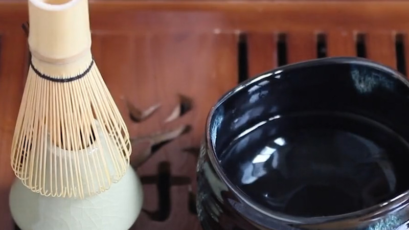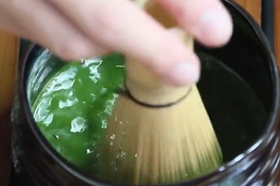 接下来在茶盏中加入80℃左右的开水,最大限度的保留抹茶的口味和香气,然后轻轻握住茶筅,用手腕的力量搅打抹茶,在此期间茶筅不能接触碗底。在搅打30秒左右的时候,若是抹茶表面的泡沫放置一会儿后并不会消失就能饮用了。