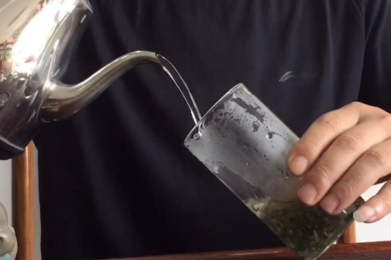 毛尖茶入杯之后,烧一壶热水,等水凉至85摄氏度时,悬壶高冲,让茶叶在水流的带动下充分翻滚,从而尽情舒展,一般注水量在水杯容量的三分之二处,切忌倒太满,不方便饮用。