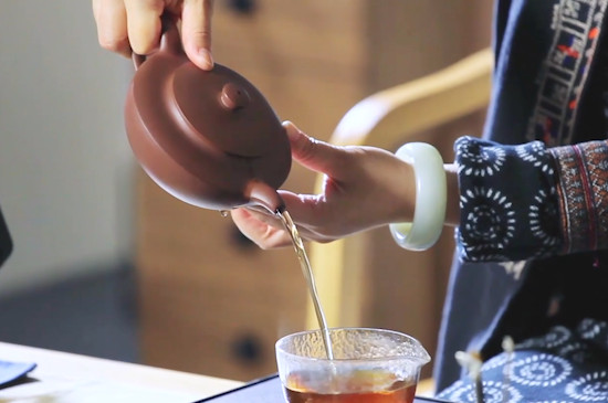普洱茶在冲泡时,先将紫砂壶和紫砂杯用刚烧开的沸水烫洗干净,再将8~10g普洱茶投入紫砂壶中,注入沸水,5~10秒后倒掉茶汤,洗2~3道茶,等泡第4道茶时盖上壶盖,焖泡5~10分钟,最后提起紫砂壶,将茶汤注入紫砂杯中即可。
