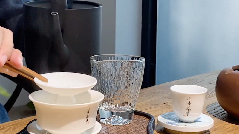 1、烫碗,将盖碗放入茶洗中,揭开碗盖,注入沸水,再盖上碗盖,用沸水烫洗盖碗;2、洗茶,将小青柑用力捏出几个口子,投入盖碗中,注入沸水,10秒后倒掉茶汤;3、泡茶,继续往盖碗中注入沸水,加盖焖泡5~7分钟后,揭开碗盖即可品饮。