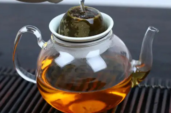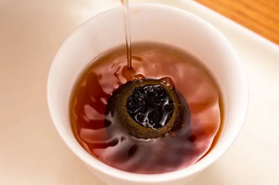 桔普洱茶是果柑和熟普洱茶的结合体,冲泡时需先用沸水洗茶,以唤醒内含物质,有利于茶汤更加醇厚、浓郁。