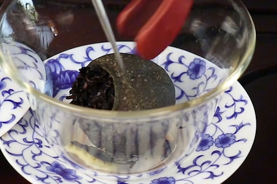 小青柑洗茶时间不宜过长,通常在5-10秒左右,先准备一颗未拆封的小青柑,将外层棉纸撕开,接着把顶盖掀开后放入盖碗中,然后注入90度以上的热水,浸润10秒后快速将水倒掉,这一过程称之为洗茶。
