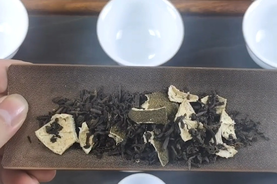 小青柑茶叶是普洱熟茶和果柑的结合体,其最简单的冲泡方式,即整颗直接投放到盖碗中,然后高冲90-100摄氏度热水,待柑体和茶叶被热水充分浸润后,将茶汤倒入品茗杯中饮用。