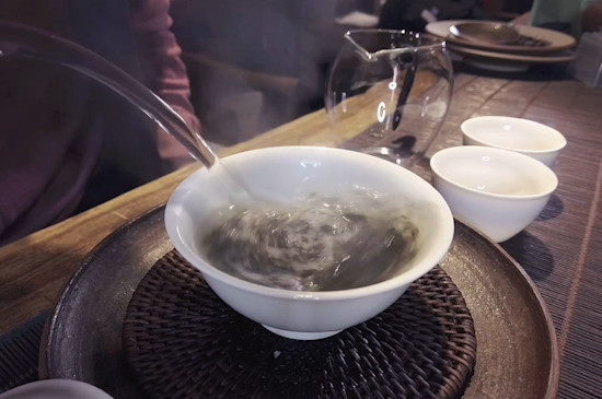 正式冲泡普洱生茶时,先准备一壶烧开的沸水,水开后缓缓靠近茶具的内壁,然后沿着边缘定点注水,水量至八分满停止倒水,然后加盖闷30秒出汤。泡好后的普洱生茶,需倒入品茗杯中饮用。