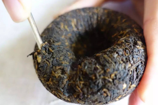 对于普通的普洱沱茶,沿着内窝的边缘,用力插入茶针,然后沿着外窝边缘慢慢的剥撬,将完整的小茶块撬下来。撬茶过程中注意掌握好力度,以免将茶叶弄得太碎,或者使用工具时不小心伤到自己。