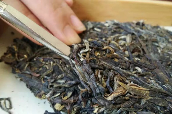 撬开的茶饼可以直接用手巧妙掰开,但是不可以使用蛮力直接将茶饼分为两半,会破坏叶底,导致茶叶的口感不佳,大块的茶饼利用茶针分解为小块进行冲泡。