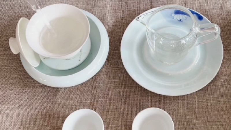熟普洱茶在冲泡时,需先将盖碗放入茶洗中,打开碗盖,往盖碗中注入沸水,之后盖上碗盖,用沸水浇淋盖碗。或是将盖碗放入玻璃茶洗中,倒入清水,置于电茶炉上煮沸。