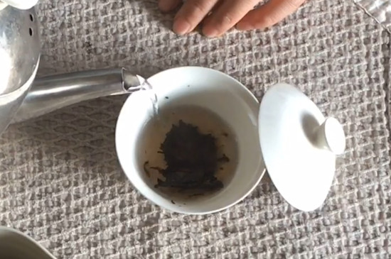 接着将5~7g的熟普洱茶用茶匙投入盖碗中,注入沸水冲泡,3秒后倒掉茶汤。然后再在盖碗中注入沸水,并盖上碗盖焖泡4~5分钟,直到熟普洱茶的香气滋味全部释放出来。