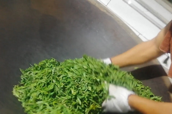 揉捻的作用是把茶叶揉破变青,卷转成条,体积缩小,让茶叶便于冲泡,同时也是为了让部分茶汁挤溢附着在茶叶表面,以此来提供茶叶冲泡后的滋味浓度。