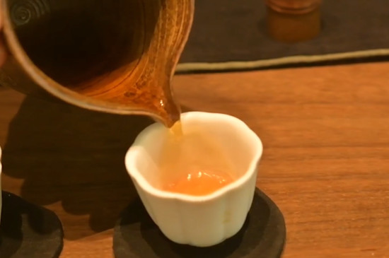 继续往紫砂壶中注入沸水,加盖焖泡5~10分钟后把紫砂杯码放好,提起紫砂壶,将乌龙茶的茶汤缓缓注入紫砂杯中,端起紫砂杯品饮乌龙茶的滋味。