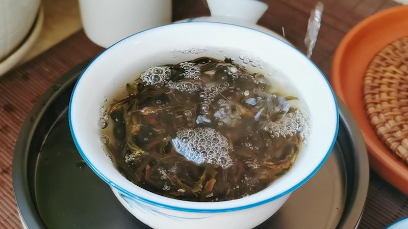 乌岽单丛茶具有条索粗壮,匀整挺直,色泽黄褐呈鳝鱼皮色,油润有光,并有朱砂红点的特点。用开水冲泡后的乌岽单丛茶清香持久,有独特天然花香,汤色清澈黄亮,叶底边缘朱红,叶腹黄亮,滋味浓醇鲜爽,回甘有力,具有独特的山韵品质。