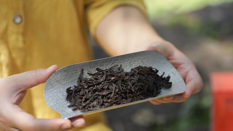 武夷肉桂成茶前拥有大叶乌龙种的特征,叶缘略具波状,叶齿细浅,叶脉细稳,叶长椭圆形,在成茶后则条索匀整、紧结壮实、色泽褐绿、油润有光。