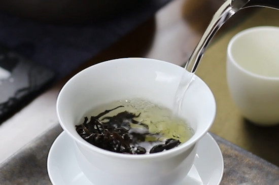 岩茶冲泡时,需先将盖碗用沸水烫洗干净,再用茶匙将5~7g岩茶投入盖碗中,注入沸水冲泡,5秒后倒掉茶汤,继续注入沸水,加盖焖泡5分钟后端起盖碗,揭开碗盖饮用。