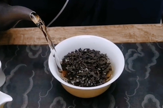 接着取出盖碗,用茶匙把4~6g水仙投入盖碗中,注入沸水冲泡,并用茶匙快速搅拌茶汤,5秒后倒掉茶汤,把水仙中所含有的杂质尽数清洗干净。