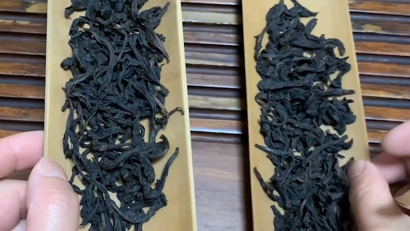 武夷岩茶是采摘一芽一叶或二叶的鲜叶,经过了萎凋、摇青、炒青、揉捻、烘干、焙火等工序,采用深发酵重焙火的做法制作的,因此武夷岩茶具有条索紧结,叶端扭曲似蜻蜓头,色泽铁青带褐油润的特点,冲泡后汤色橙黄明亮,叶片红绿相间,内质“活、甘、清、香”,闻之有特别的岩骨花香,香气馥郁持久,“岩韵”明显。