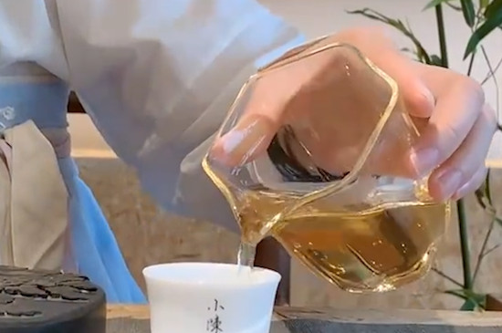 用沸水冲泡后的肉桂茶,汤色橙黄清澈、叶底黄亮、红点鲜明,整体呈绿叶红壤边状,闻之有明显的桂皮香,冲泡六七次仍有“岩韵”,入口醇厚回甘,咽后齿颊留香。