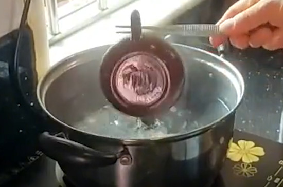 这一步依旧是将铁锅里的水换成清水,并将清水烧开,与此同时把紫砂壶用清水洗净,放入沸水锅中浸泡20分钟,最后将紫砂壶放入阴凉干燥处晾干即可。