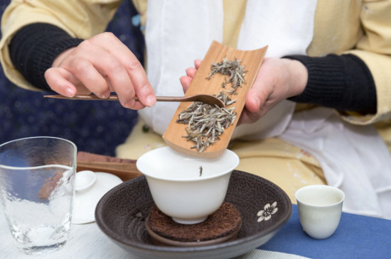 使用茶则时,用右手拿住茶则柄部中央位置,然后伸入罐中取茶。注意手不能触及茶则上端盛取茶叶的位置,另外用完之后要轻放到茶桶中。