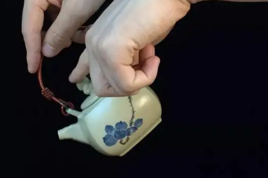在使用提梁壶时,可以用拇指、中指握紧圈把,无名指与小指顶住壶把,接着食指按住壶钮,然后将茶水缓缓倾倒出。注意不要把壶钮上的透气孔按住,否则会出水不畅,影响泡茶口感。