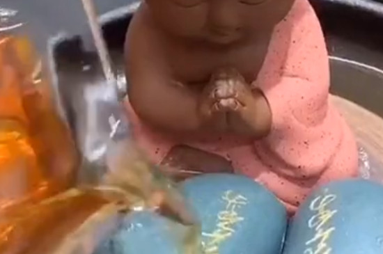 养茶宠时只需用茶水浇灌即可,不能用白开水,若是用白开水浇灌茶宠,会使茶宠的手感逐渐变得有些涩手,无法形成柔顺的感觉,只有用茶水浇灌茶宠才能让茶宠温润顺滑。