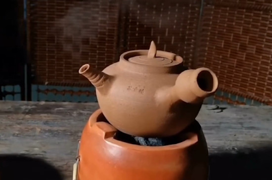 将适量山泉水倒入茶铫里煮沸,当山泉水微微有声时为一沸,铫缘涌如连珠时为二沸,腾波鼓浪时为三沸,由于一沸水太嫩,三沸水太老,因此潮汕功夫茶需用二沸泡。