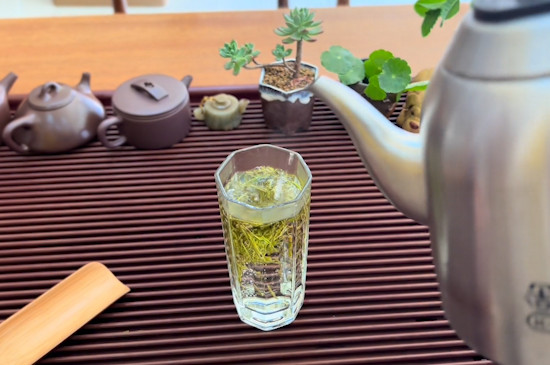 黄金芽茶叶入杯之后,先注入约水杯三分之一的水量,水温为85摄氏度左右,然后轻轻晃动杯身,待茶叶完全浸润后再次注水到七分满,浸泡2分钟即可品饮。冲泡后的黄金芽香气清新,滋味清爽。