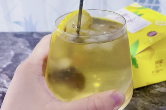 柠檬水泡好后,用勺子取1勺蜂蜜,放入茶水中,搅拌均匀即可饮用。若是喜欢冰镇的口感,可适当加入冰块。注意柠檬片味道浓郁,比较耐泡,通常投放2-3片干柠檬,能连续反复冲泡2-3次。
