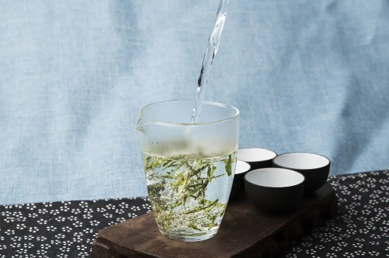 冲泡时先倒入部分开水,托住杯底轻轻晃动茶杯,使茶叶与水充分相容,浸出茶中所含营养成分。再次倒入开水,冲泡力度不宜过大,壶口高于茶杯一两公分,沿着杯壁缓缓倒入,使茶叶慢慢在杯中舒展。