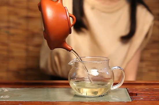 接着将5~7g茶叶用茶匙投入茶壶中,注入适宜茶叶温度的开水,3~5秒后将这第1泡茶汤倒掉,即洗茶。若是陈年茶叶或是成熟度较高的茶叶,则需洗2遍茶。
