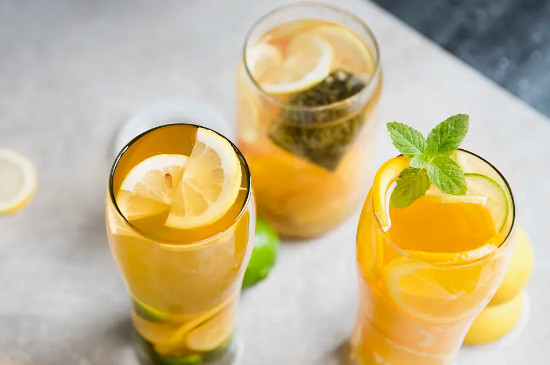 冷泡茶可以和柠檬一起搭配,先准备乌龙茶包一个,加入凉白开700毫升,之后将柠檬切片放入,若是喜欢冰镇的口感,可适量加入冰块,品尝茶汤,顿感冰凉、清爽。
