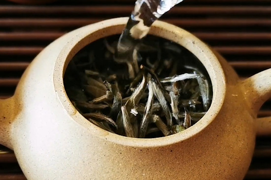 白茶属于微发酵茶,采用细嫩的芽叶为原料,经过阳光晒干或文火烘干而成,其干茶可以直接泡水饮用。若是存放时间较长的老白茶,则需准备一个煮茶壶,将茶叶放入后加水烹煮。