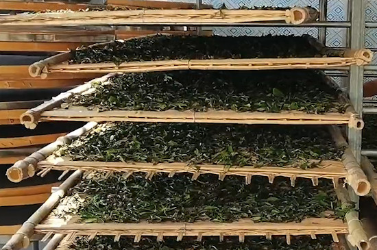 白茶制作工艺较为最原始,只经过萎凋、干燥制成。所谓萎凋就是把鲜叶摊在散光处或阴处,等到晾至八九成干的时候再焙干,既没有杀青,也没有做青步骤。白茶在萎凋过程中,鲜叶中的酶也会起作用,因而白茶是一种微发酵茶。